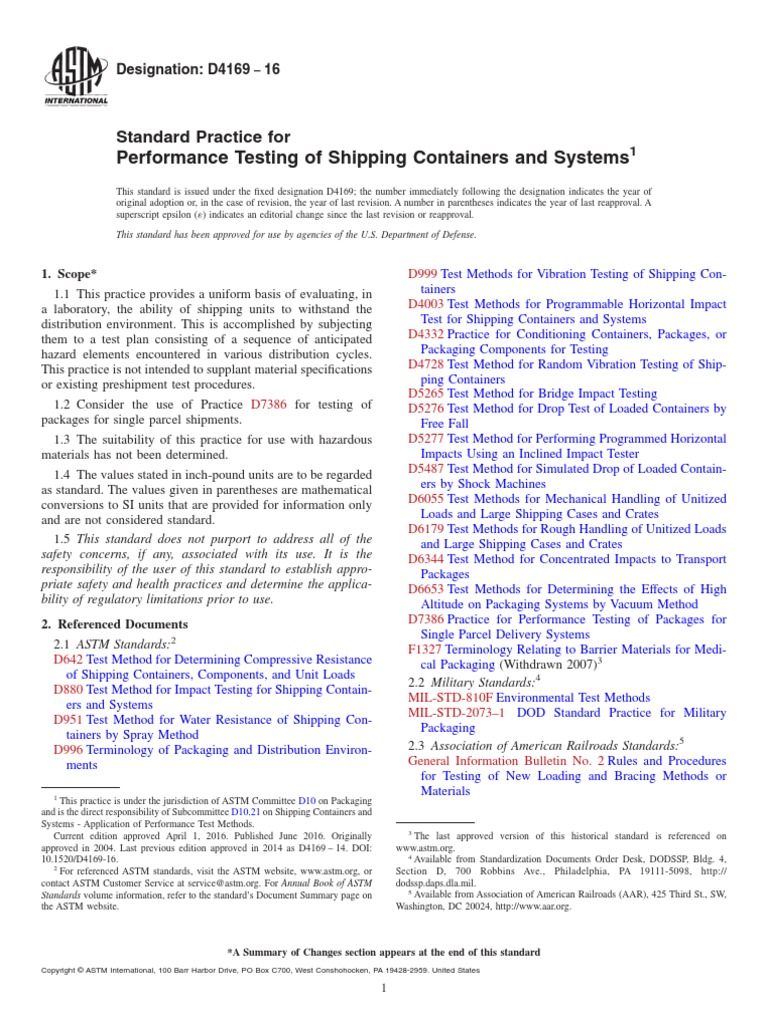 Standard Practice for Performance Testing of Shipping Containers and Systems1. ASTM D4169 01 Standard Practice for Performance Testing of Shipping Containers and Systems. Get Free Astm D4169 Free By searching the title publisher or authors of guide you essentially want you can discover them rapidly.