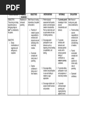 The Ultimate Guide to Nursing Diagnosis learn how to formulate nursing diagnoses correctly in this easy-to-follow guide. READINESS FOR Demonstration of Discharge Assess clients Indicate deficient GOAL Ano ba ang ENHANCED behaviors or cues Outcome. Readiness for enhanced parenting rt bonding and attachment amb parents attentiveness and cuddling of child.