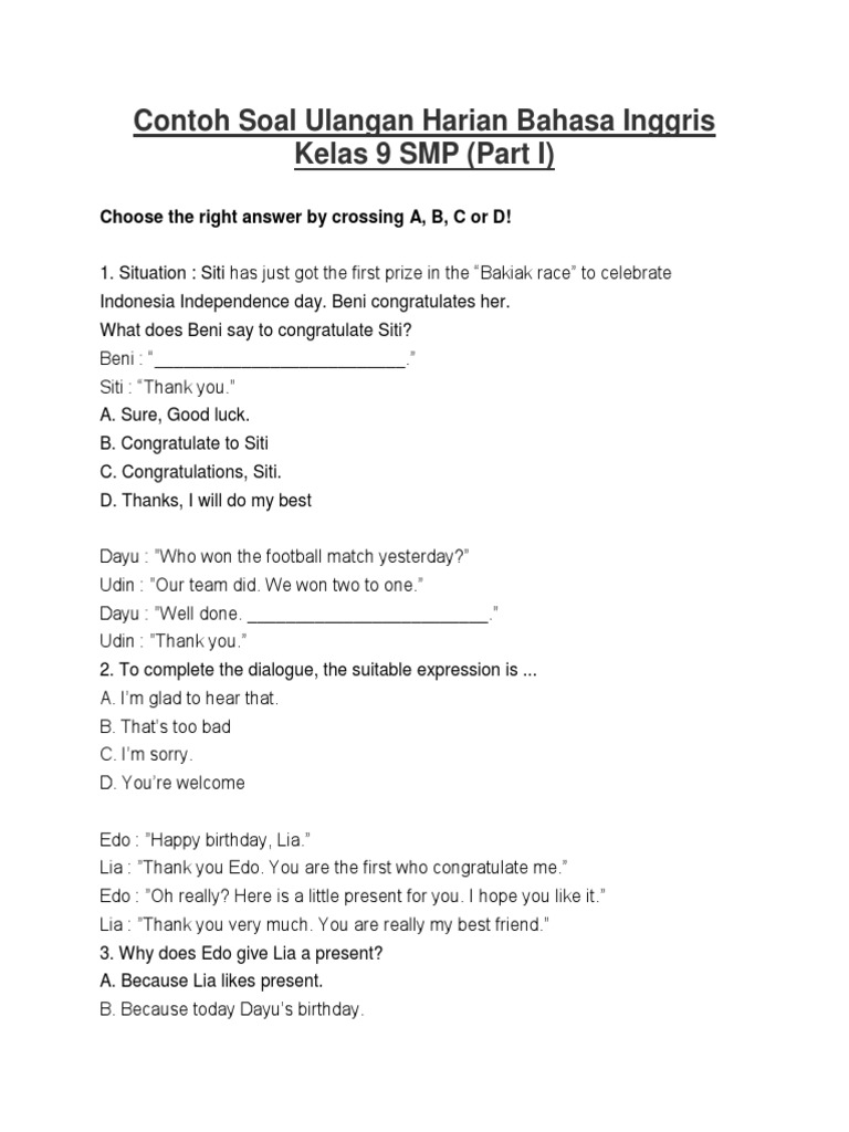 Contoh Soal Ulangan Harian Bahasa Inggris Kelas 7 Smp Part Ii. Soal bahasa inggris kelas xi opinion. DOWNLOAD SOAL UN BAHASA INGGRIS 2018.