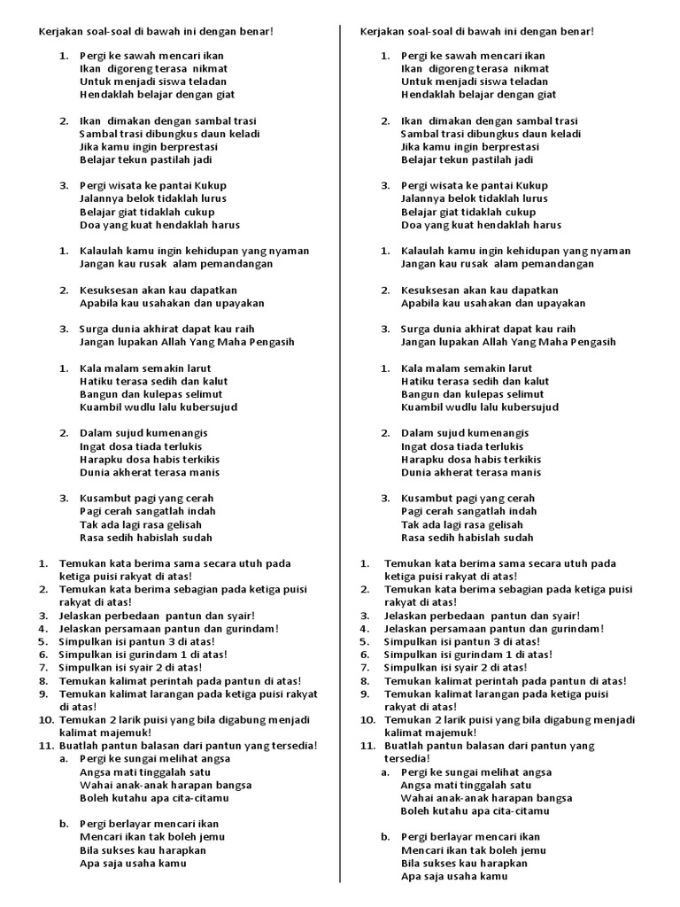 Contoh Soal Puisi Rakyat Kelas 7 Kt Puisi Cute766