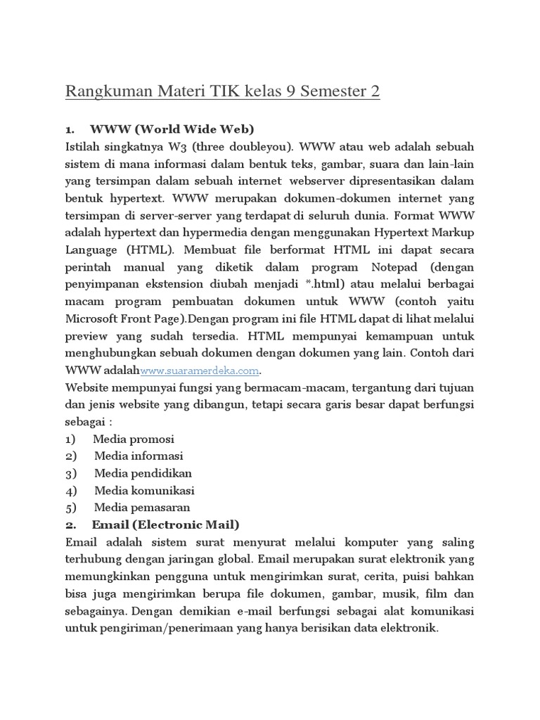 Rangkuman Materi Tik Kelas 9 Semester 2