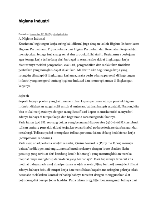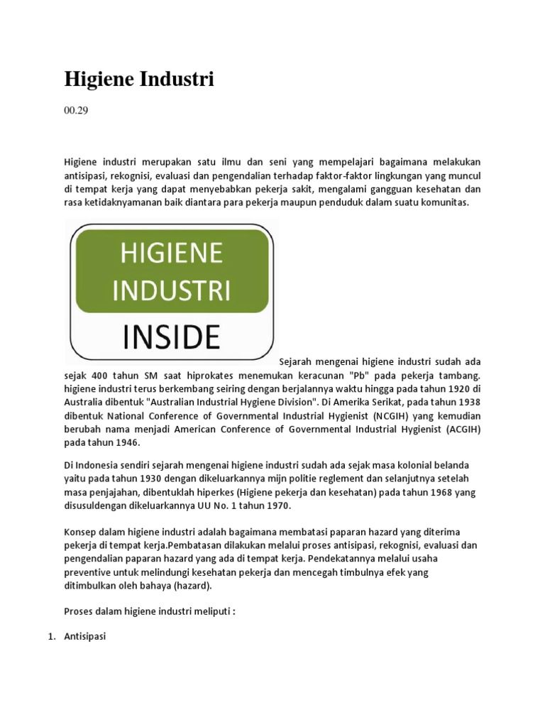 Doc Higiene Industri Karel Ponggawa Academia Edu