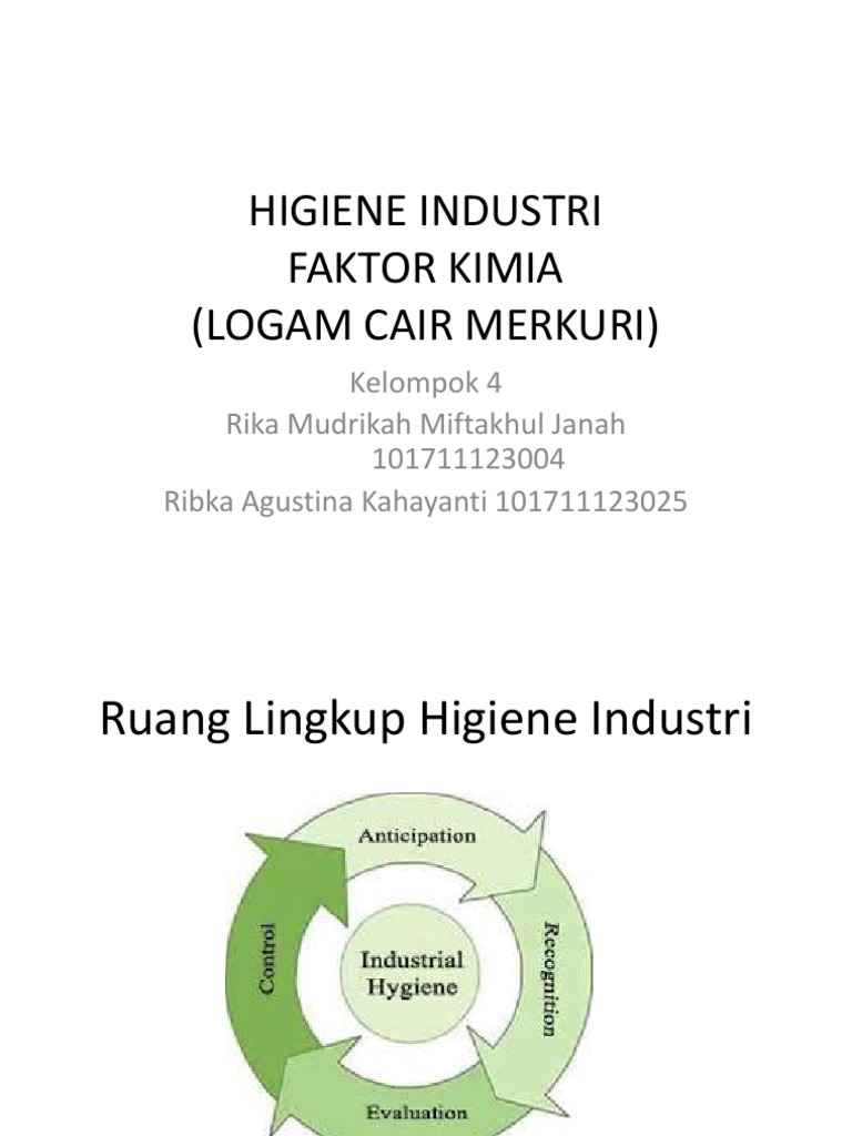 Lingkungan Kerja Faktor Kimia DAN BIOLOGI Higiene Industri halaman 3 Sedangkan bahan kimia chemical adalah unsur kimia dan senyawanya dan campurannya baik yang bersifat alami maupun sintetis. Jurnal tentang higiene industri pdf. Industrial Hygiene monitoring results and reports shall be put in electronic files.